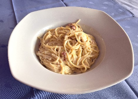 Spaghetti Carbonara mit Sahnesauve und Schinken